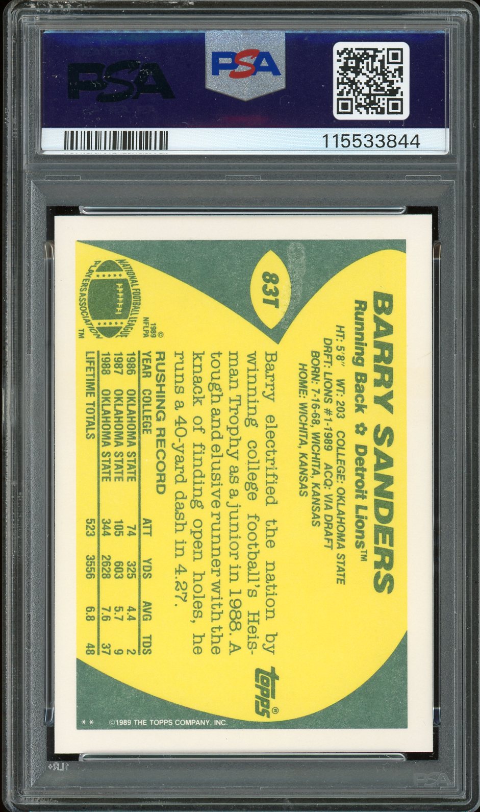 1989 Topps Traded #83T Barry Sanders Rookie Auto HOF Detroit Lions PSA 9 Auto 10