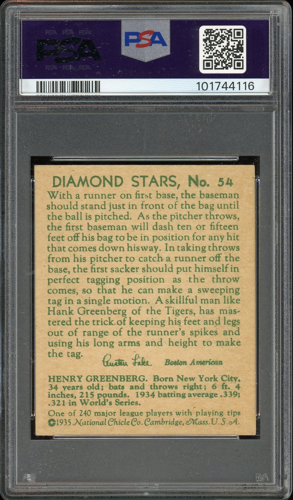 1934-36 Diamond Stars #54 Hank Greenberg HOF Detroit Tigers PSA 6 EX-MT