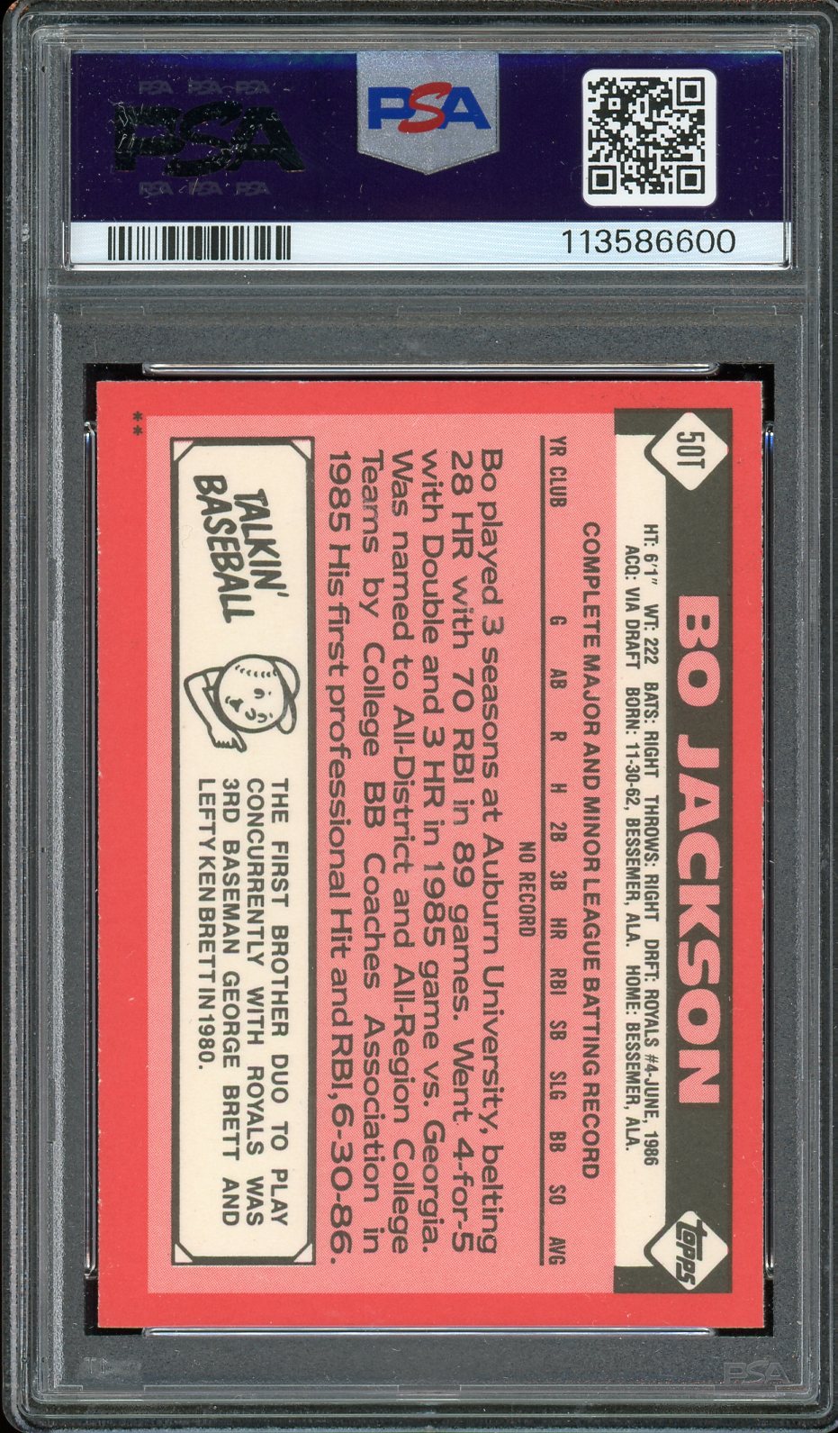 1986 Topps Traded #50T Bo Jackson Rookie Auto Kansas City Royals PSA 9 Auto 10