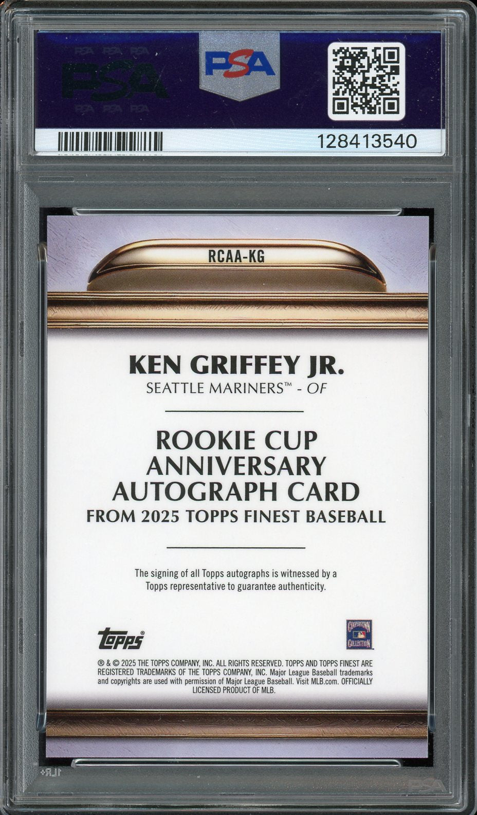 • Load image into Gallery viewer, 2025 Topps Finest Ken Griffey Jr. Auto Rookie Cup Anv. Black Refractor /10 PSA 8 Auto 10